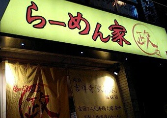 步行 约3分地图 政 拉面屋 东京吉祥寺的武蔵家拉面秘诀。 浓厚油润的酱油汤加上3种面条选项,是当地市民的推荐店铺。